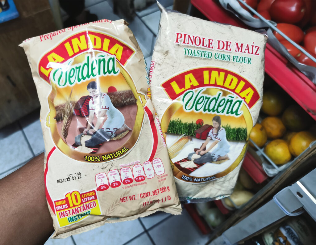 Los polvos para preparar agua de Cebada, horchata y atole de pinole que aquí venden en fruterías y tiendas de abarrotes también son uno de los favoritos para llevar de regreso a sus casas. Son de la India Verdeña estos 3 productos. También el sobre para preparar chocomiles del mercado Pino Suárez es bastante popular.