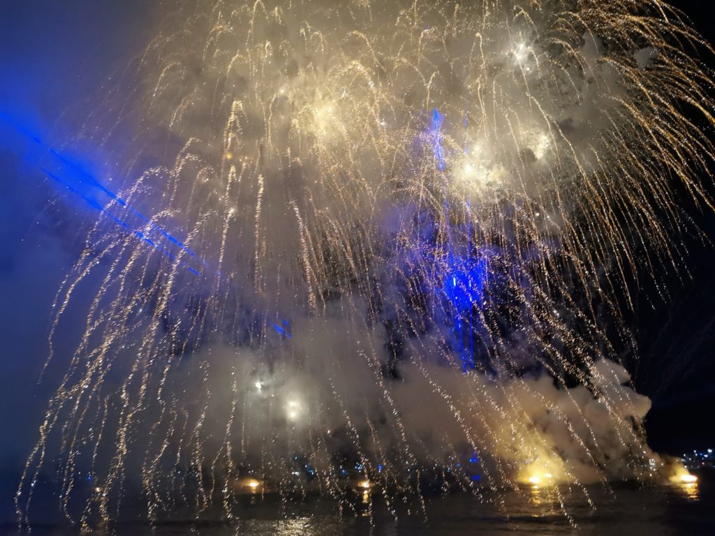 Despues de esto comenzaron los fuegos artificiales que iluminaron los rostros de las personas ahí presentes y retumbaba su sonido entre los cerros que limitan esta parte del malecón de Mazatlán. Fueron 25 minutos de espectáculo seguido de una ovacion de aplausos y alegría de los mazatlecos y visitantes que algunos se quedaron a seguir la fiesta mas importante de Mazatlán mientras otros se alejaban para regresar a sus casas.