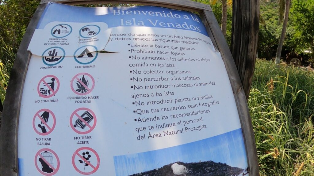 Con letreros en la isla y una platica previa antes de llegar a la isla se les comparten las medidas que se tienen que seguir para visitar esta Área Natura Protegida: