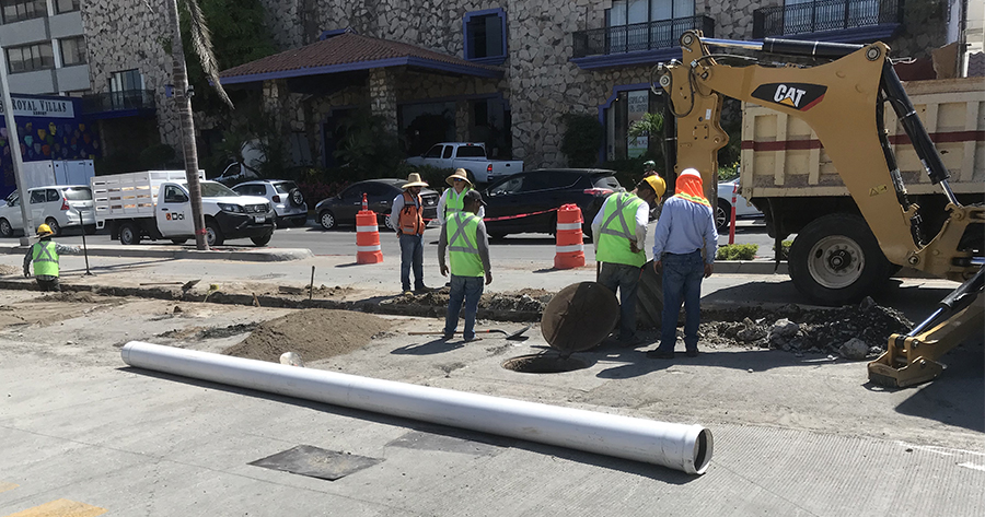 Desde la semana pasada si vas a la Zona dorada en Mazatlán te ha tocado ser desviado por la presencia de maquinas y trabajadores de la construcción en la zona. Esto es debido a que se esta ampliando la red de agua potable con la colocación de un tubo de 10 pulgadas de diámetro.