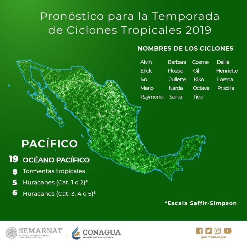 Para esta temporada el sistema Meteorologico de México pronostica 8 tormentas tropicales, 5 huracanes de categoria 1 o 2 y 6 huracanes entre la categoria 4 a 5.